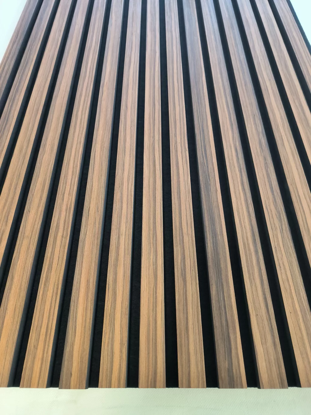 Anyag: MDF lamella valódi fa furnér bevonattal, poliészter (PET) akusztikai filc hátlappal