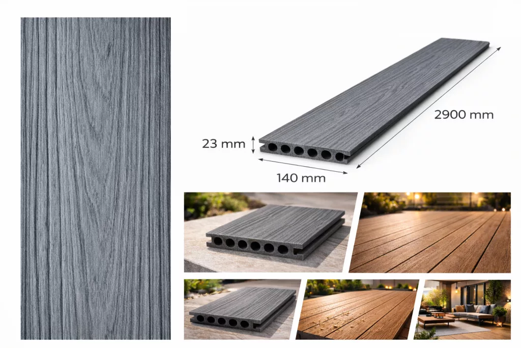 Anyag: WPC (Wood Plastic Composite) – faőrlemény és műanyag kompozit