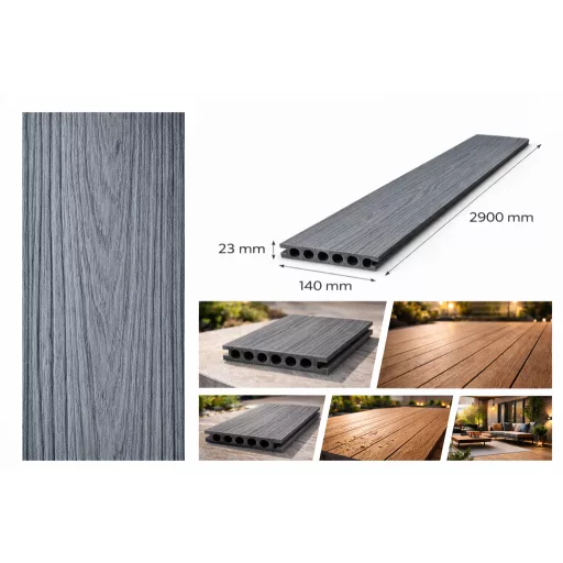 ezüstszürke erezet mintás WPC kültéri padlópanel