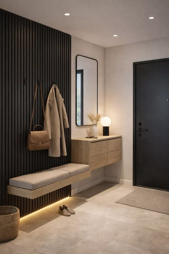 WPC INTERIOR WALL PANEL dekoratív beltéri rácsos falburkolat modern otthonok és irodák falára. Elegáns megjelenés, tartós és könnyen tisztítható felület.