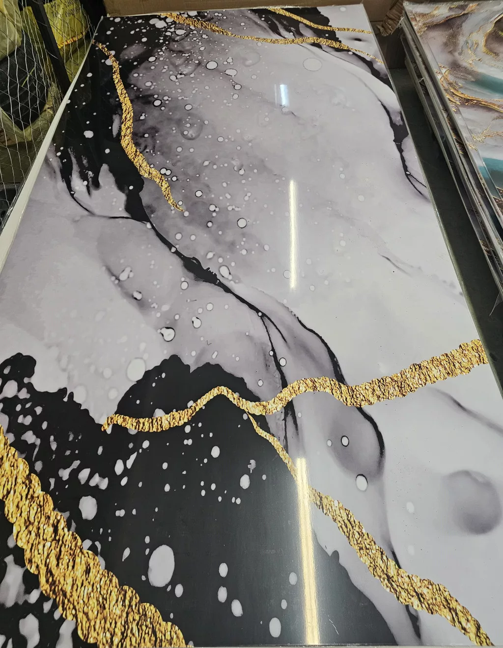 SPC falpanel márvány mintás modern dekoratív falburkolat, amely esztétikus megjelenést és tartós felületet biztosít beltéri vagy kültéri terekben.