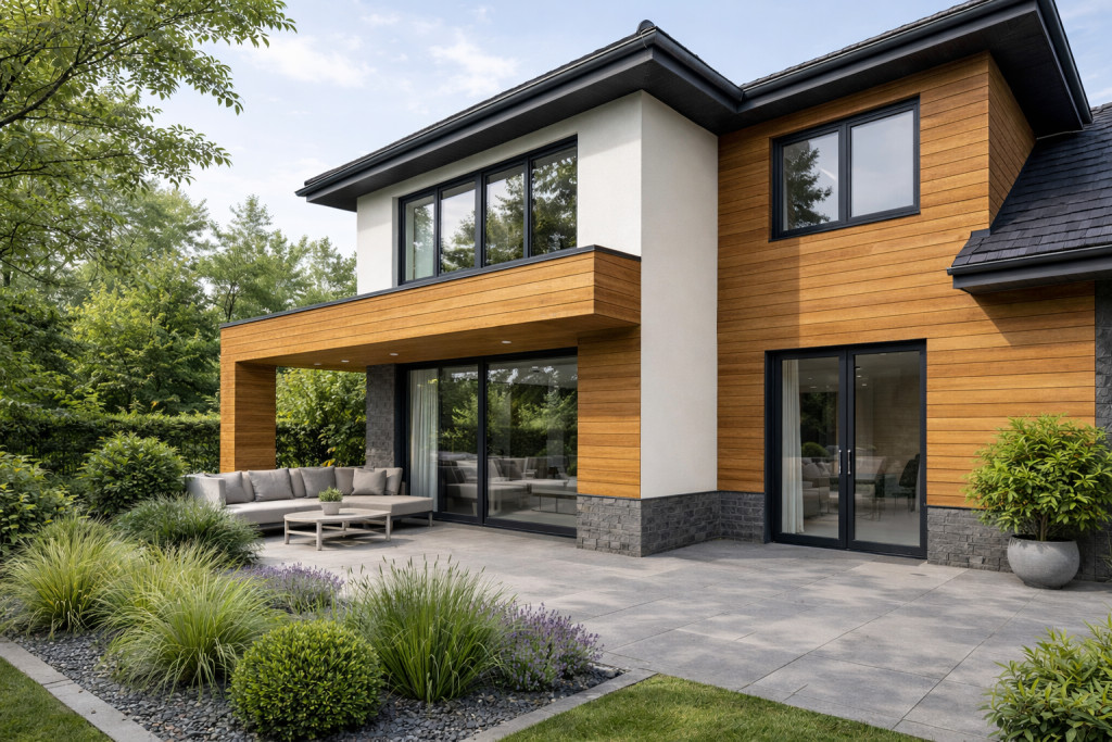 WPC EXTERIOR WALL-FENCE PANEL dekoratív kültéri fal- és kerítéspanel modern kültéri terekhez. UV-álló és nedvességálló burkolat hosszú élettartammal.