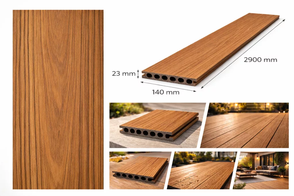Anyag: WPC (Wood Plastic Composite) – faőrlemény és műanyag kompozit